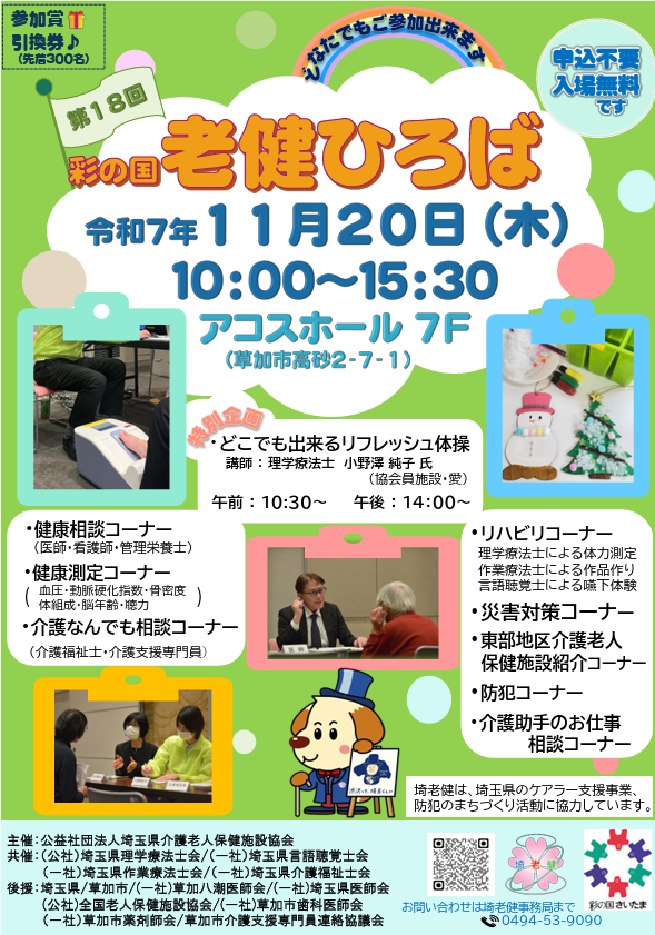 公益社団法人 埼玉県介護老人保健施設協会主催で、彩の国老健ひろばが実施されます!