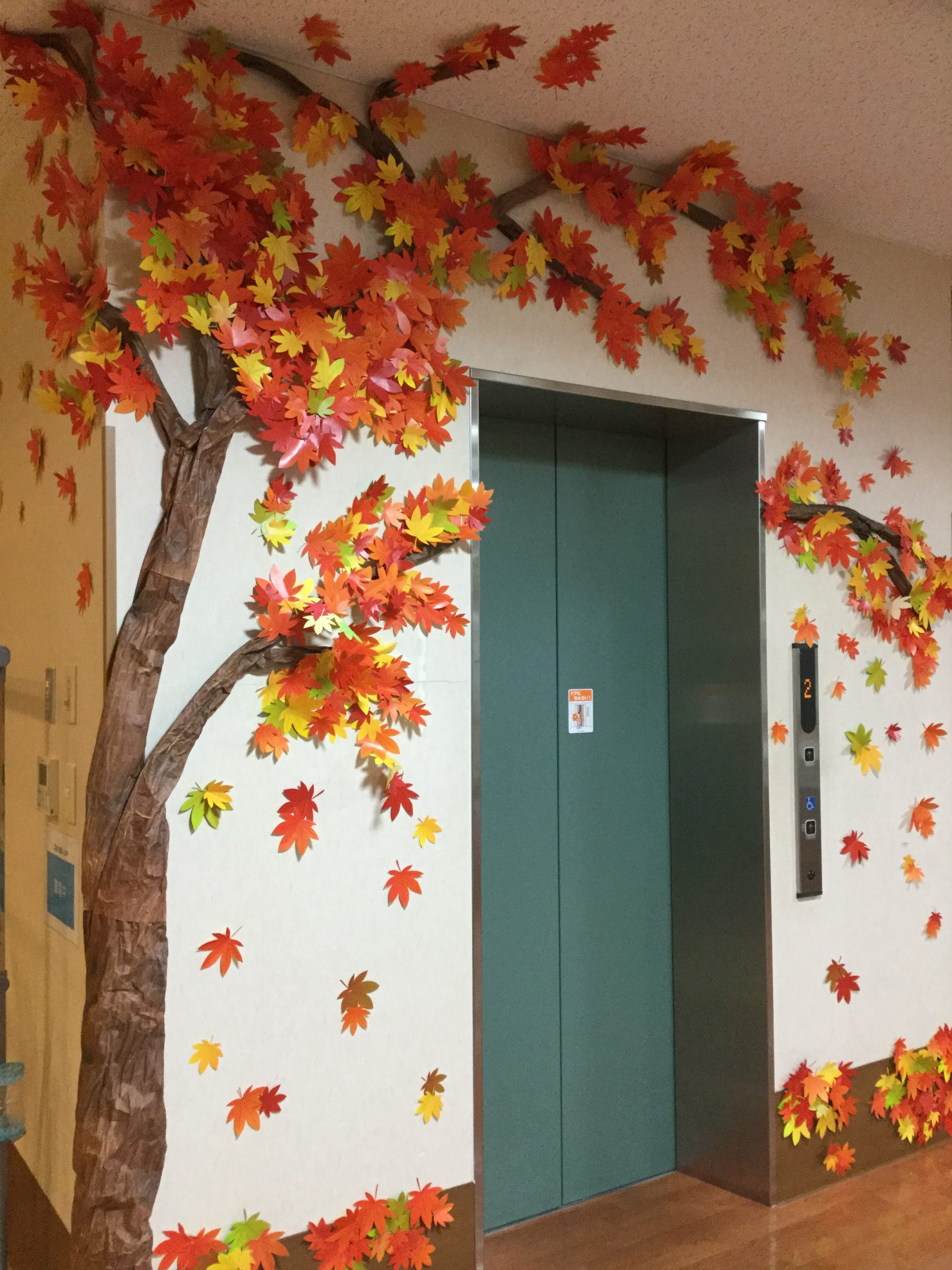 作品名もみじの木制作者利用者様有志+全職員事業所アクアメイト所沢 通所介護事業所メッセージエレベータ横にある壁の角部分を幹に見立て、もみじの木を作成しました。たくさんの紅葉の葉は利用者様が細かい部分まで丁寧に切り出して下さいました。 -