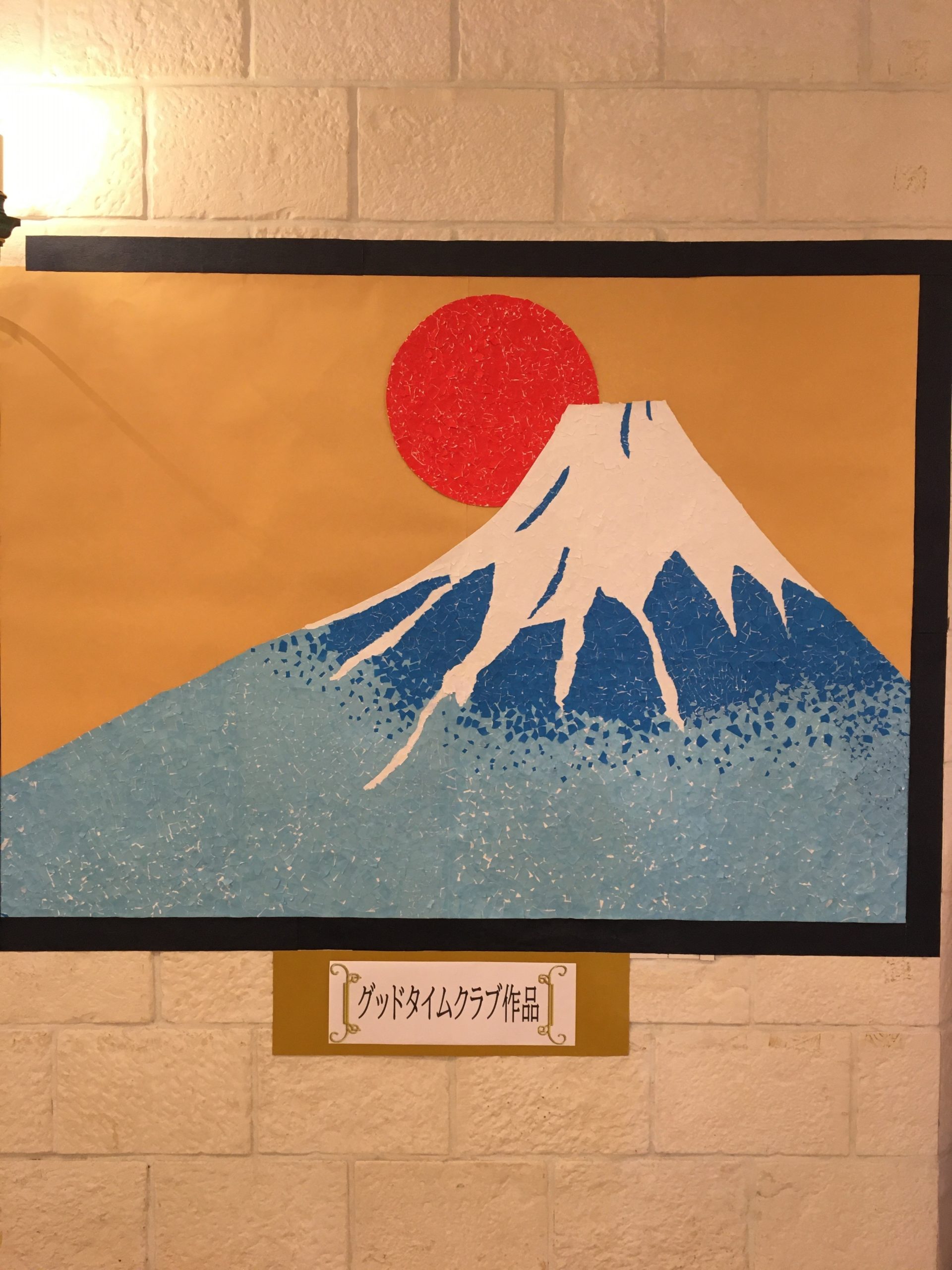 作品名初富士ご来光制作者手作りクラブ参加ゲストとGTCスタッフ事業所有料老人ホーム グッドタイムリビング埼玉蓮田メッセージ貼り絵で仕上げた力作です -