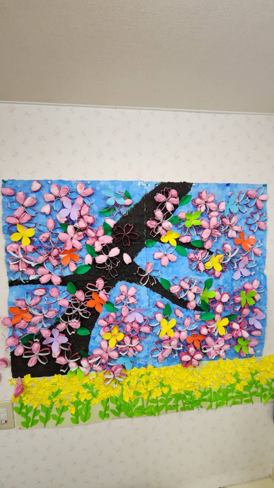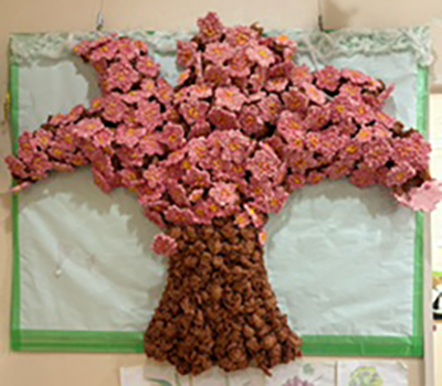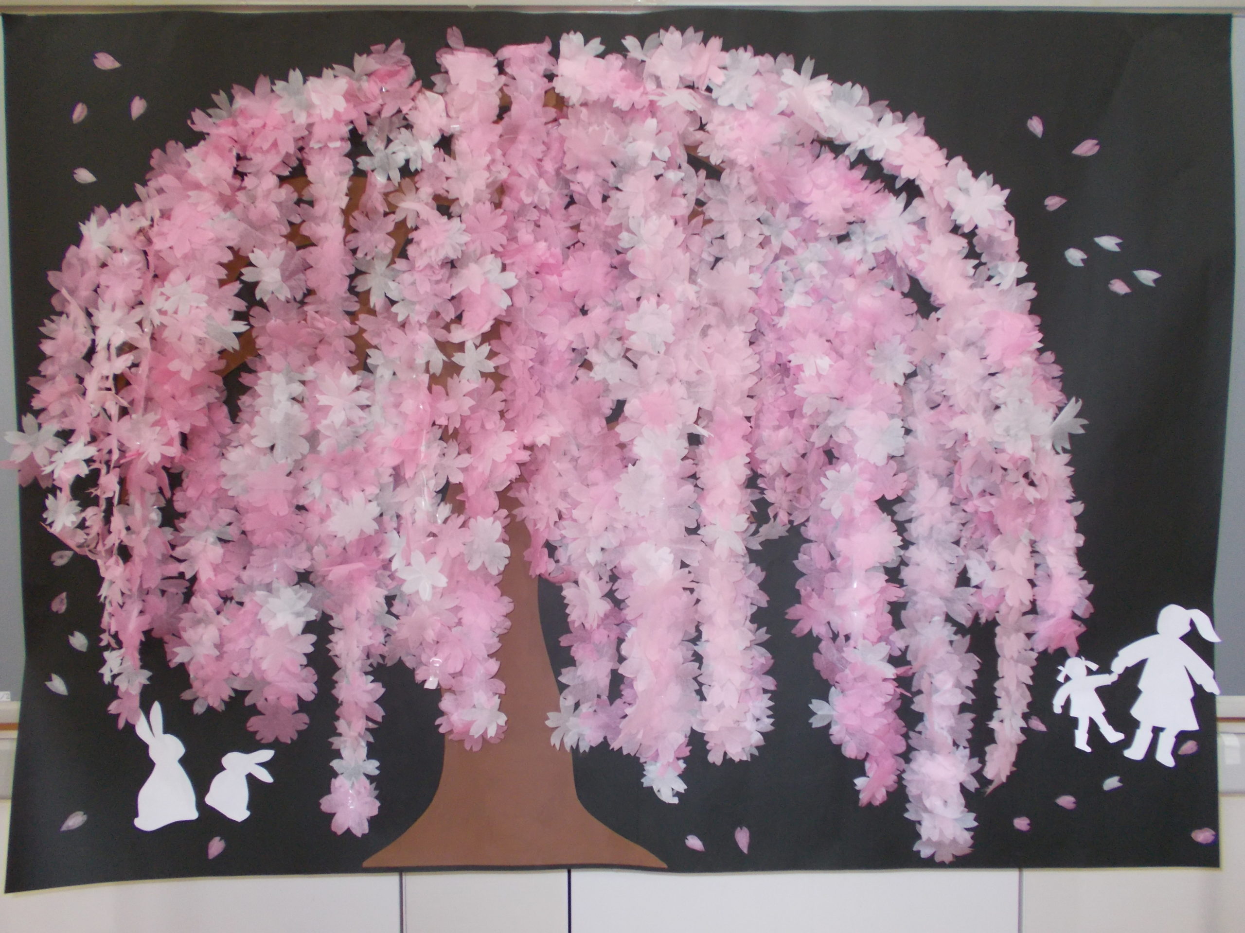 作品名さくら制作者利用者さんとデイスタッフ事業所若葉ナーシングホーム デイサービスセンターメッセージ利用者さん主体で花びらをそれぞれひとつひとつ作り、一本の木にたくさんの桜が咲きました。 -