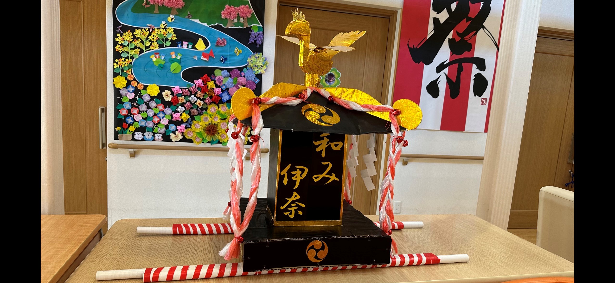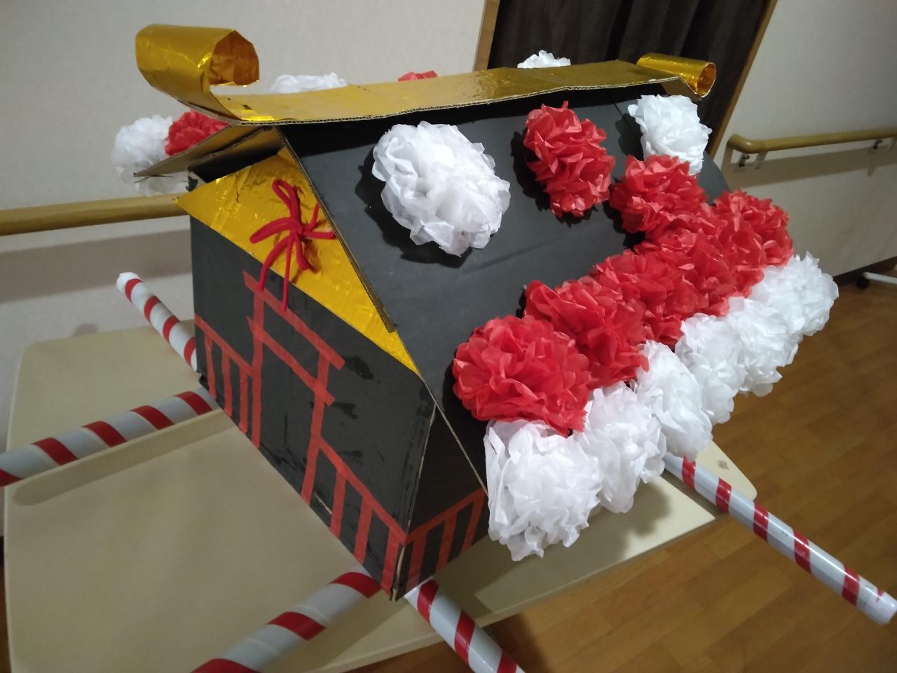 作品名和み伊奈 御輿!!制作者職員事業所グループホーム和み 伊奈メッセージ利用者様と盛んに担ぐために強度を上げて制作。