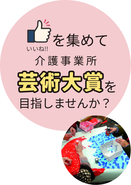 「いいね!」の数と、文化祭実行委員、特別審査員による審査の評点をもって、「芸術大賞」「利用者部門賞」「介護職員部門賞」「団体部門賞」「特別賞」を決定し、各賞に選ばれた事業所様には、記念品を差し上げます♫